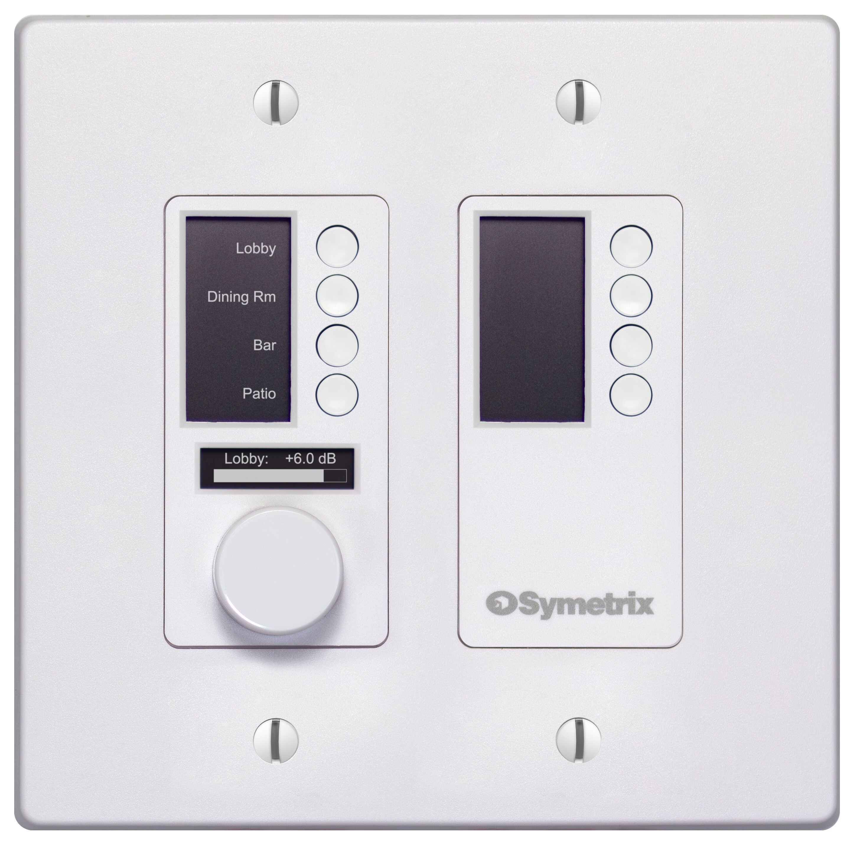 - W4 Push button encoder, eight buttons, and display, US 2-gang form factor with dual gang Decora faceplates